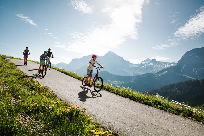 „Trottiland“ bezeichnet sich Adelboden zurecht und zählt zu den grössten Trotti-Destinationen der Welt. 45 km auf verschiedensten Routen rund um Sillerenbühl, Hahnenmoos und Adelboden warten darauf entdeckt zu werden. Auf 7 Strecken gehts mit den übergrossen „Rollern“ schnell oder gemütlich bergab.